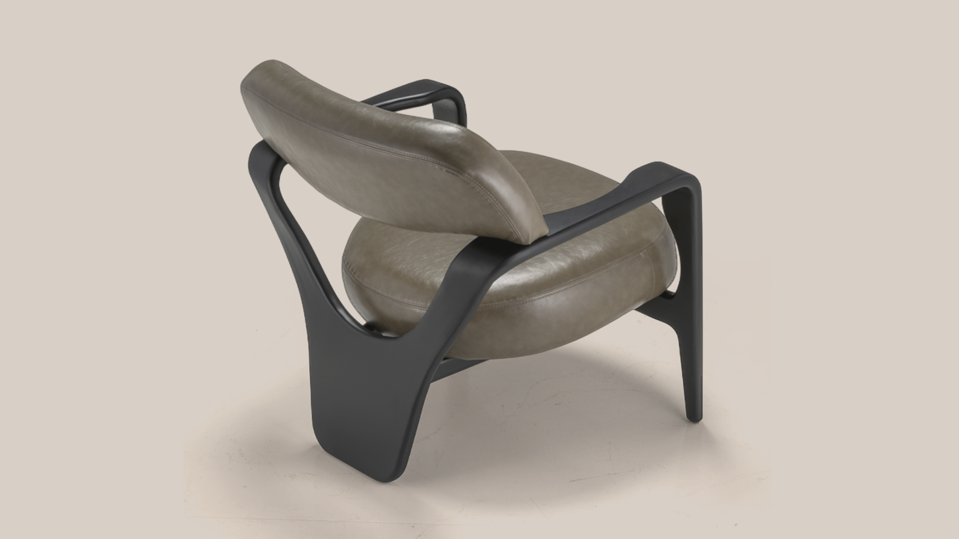 Os braços da peça se integram organicamente ao encosto e aos pés, criando um fluxo visual que transmite transformação e unidade.