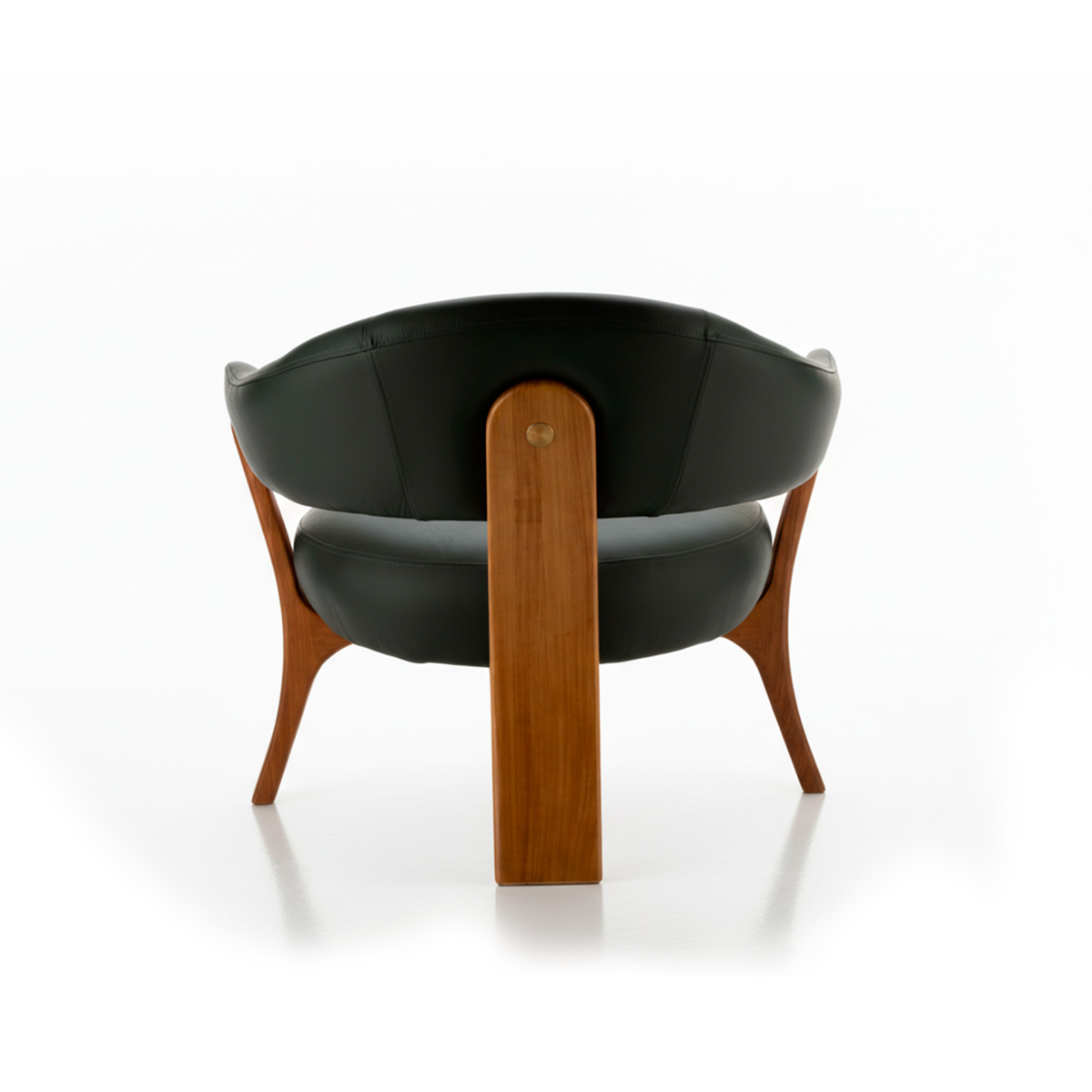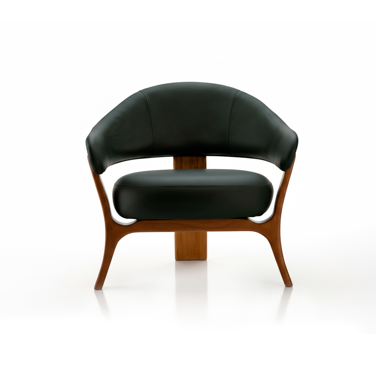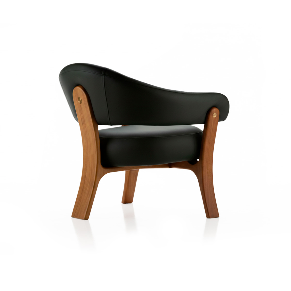La butaca ARC combina madera, tela y metal en un diseño ligero, continuo y armonioso. Sus tapizados ofrecen un confort envolvente, mientras que las patas en Jequitibá mecanizado, con forma curvilínea y disposición en trípode, refuerzan la estabilidad y añaden elegancia al conjunto. La técnica de encolado de la madera optimiza el aprovechamiento de los listones y resalta la belleza natural de las vetas, revelando un uso consciente del material. Los detalles estructurales crean contraste y sofisticación, y las curvas entre las patas y la base generan una sutil ilusión óptica, haciendo que el asiento parezca flotar y resaltando la estética equilibrada y refinada de la pieza.