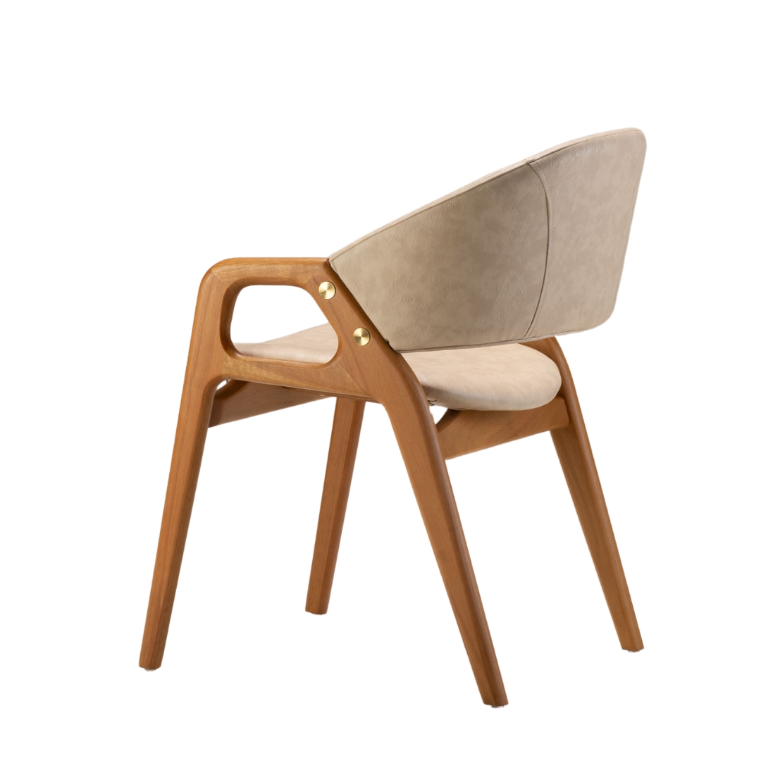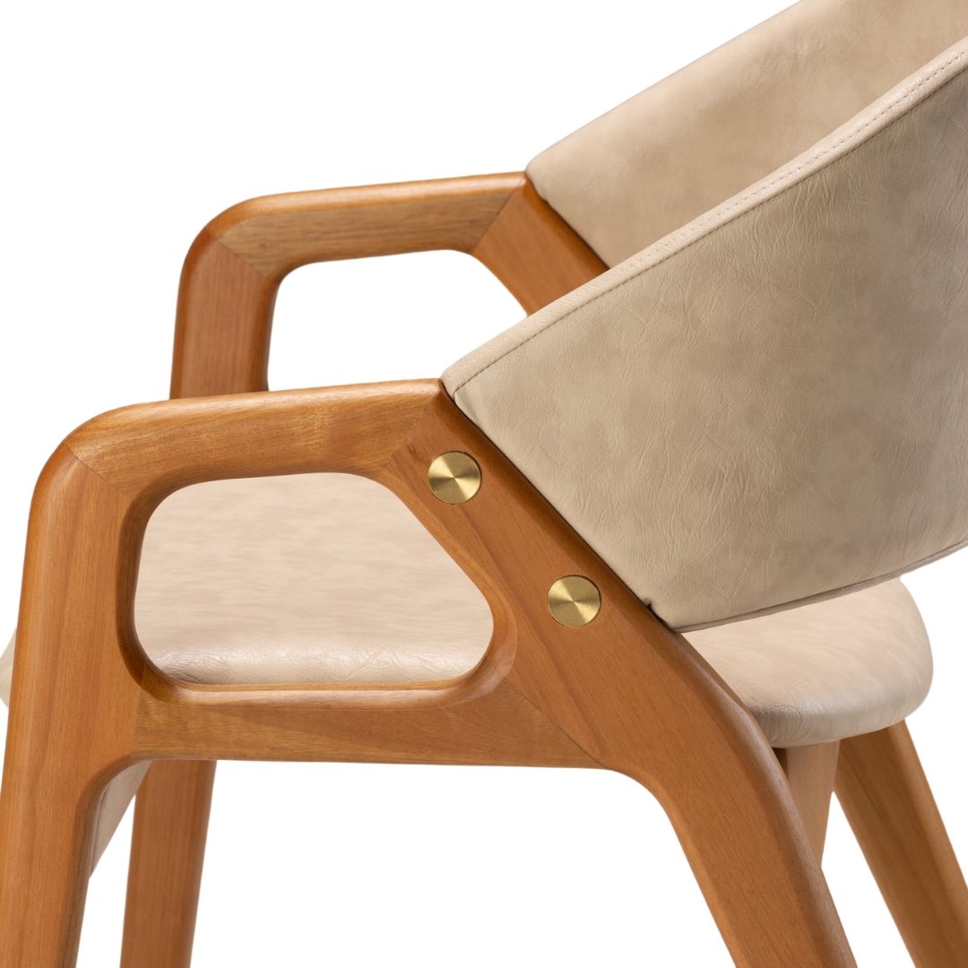 A cadeira Eclipse, projetada por Luiz Bossardi, também reflete esse alinhamento através do detalhe lateral que remete ao formato do fenômeno. Assim como nos processos celestiais que exigem alinhamento perfeito para o eclipse acontecer, cada peça do conjunto Eclipse passa por processos de produção cuidadosos, resultando em um conjunto único que combina simbologia, elegância e funcionalidade.
