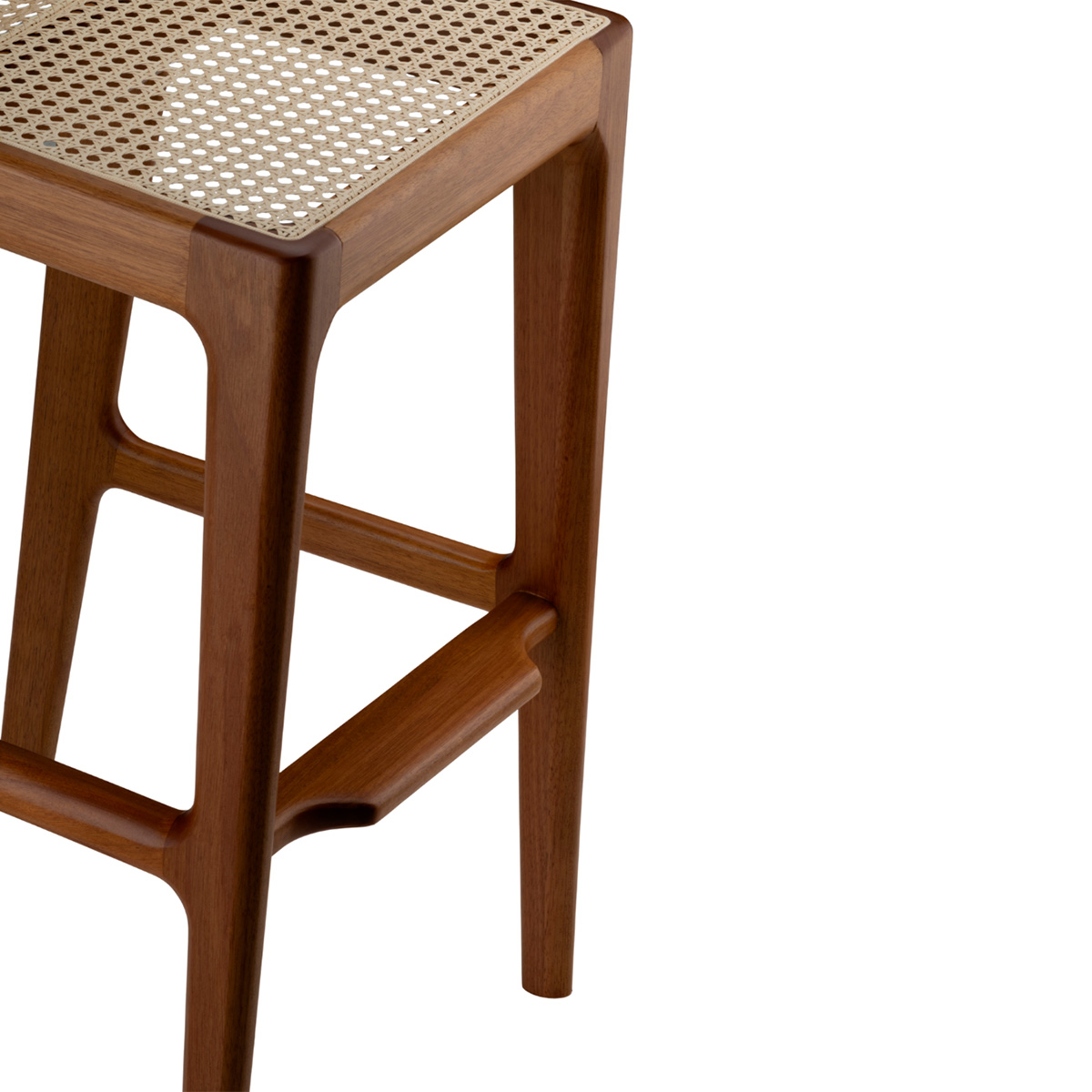 El taburete Selena surge a partir del éxito internacional de la silla homónima, preservando el mismo lenguaje de minimalismo orgánico que convirtió al modelo en un icono premiado. En su versión más alta, mantiene proporciones equilibradas, estabilidad y ligereza visual. Su estructura, mecanizada en CNC y acabada a mano, revela curvas continuas y superficies suaves que garantizan confort y firmeza. La paja natural refuerza la identidad de la línea, aportando transparencia y delicadeza en un elegante contraste con la madera maciza. Versátil para cocinas gourmet, bares y ambientes sofisticados, el taburete ocupa el espacio con una presencia discreta y refinada; una evolución madura y contemporánea de un clásico ya consagrado.