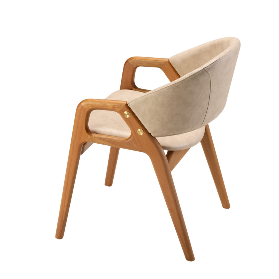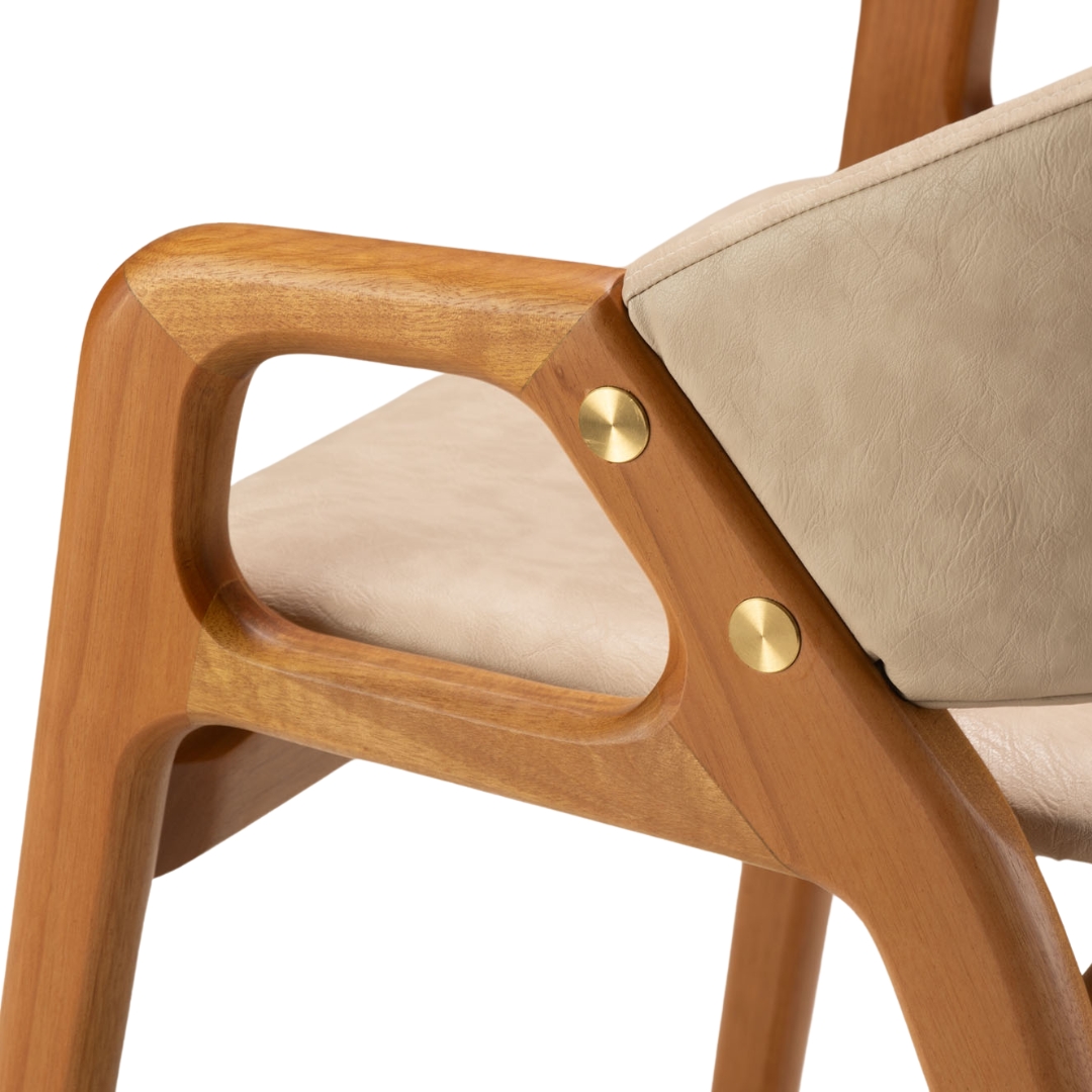 A cadeira Eclipse, projetada por Luiz Bossardi, também reflete esse alinhamento através do detalhe lateral que remete ao formato do fenômeno. Assim como nos processos celestiais que exigem alinhamento perfeito para o eclipse acontecer, cada peça do conjunto Eclipse passa por processos de produção cuidadosos, resultando em um conjunto único que combina simbologia, elegância e funcionalidade.