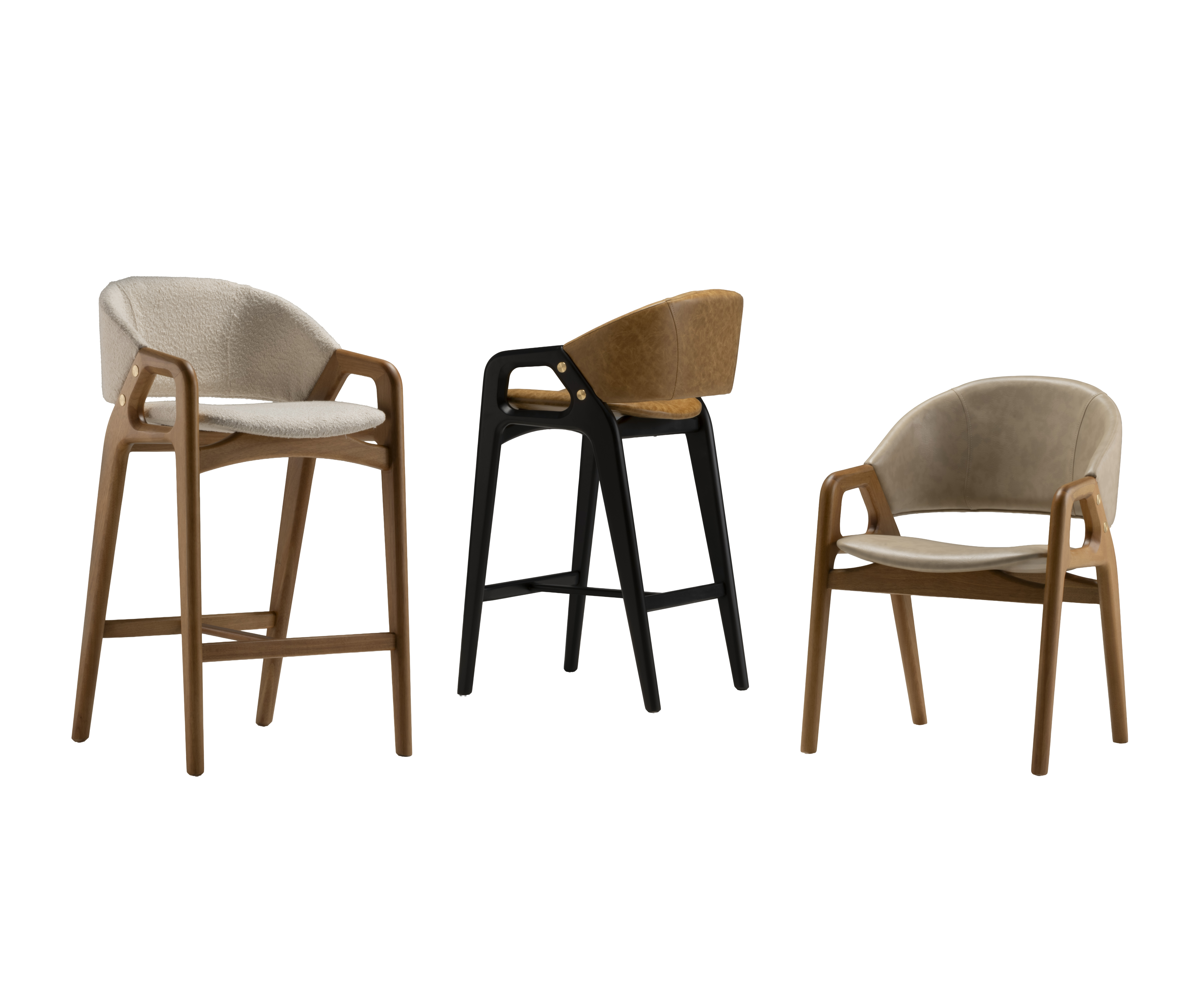 A banqueta Eclipse, projetada por Luiz Bossardi, também reflete esse alinhamento através do detalhe lateral que remete ao formato do fenômeno. Assim como nos processos celestiais que exigem alinhamento perfeito para o eclipse acontecer, cada peça do conjunto Eclipse passa por processos de produção cuidadosos, resultando em um conjunto único que combina simbologia, elegância e funcionalidade.
